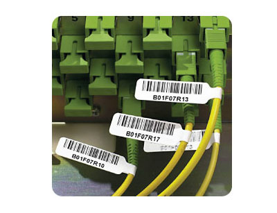 光纤由于线径小,所需要标识的内容比较多,所以光纤或者小线径的线缆多数是用旗形标签(如P型标签,T型标签),或者用超柔软的覆盖保护膜标签来作为光纤标签或小线缆标签。