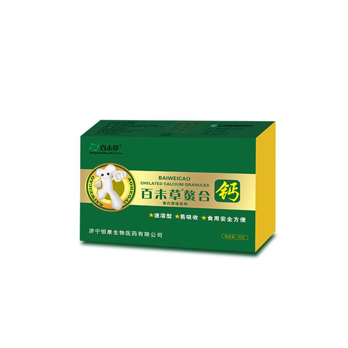 螯合钙是采用现代生物工程技术,将每两个氨基酸分子与一个钙离子在高压高频的特殊条件下精制而成。螯合钙分子结构稳定,钙原子与两个氨基酸分子中的氮原子以配位键相连,与羧基的氧原子以共价键相连,形成两个结构稳定的五圆环。由于螯合型氨基酸钙结构的特殊性,在胃腔里的钙仍以分子态形式存在而没有游离钙离子,所以其吸收性好;螯合钙溶解性好,能速溶于水,不用胃酸水解而加重胃的负担,胃舒服、无便秘;螯合钙对骨骼有特殊的亲和力,对骨的留存率是其他靶器官组织的七倍多;螯合钙是纯氨基酸螯合钙,已经使钙与氨基酸直接形成了螯合物,故不需要任何促进钙吸收的添加物;螯合钙属无糖氨基酸螯合钙。本品科学添加天门冬氨酸钙、低聚果糖等主要原料,采用现代生物技术精制而成的生物产品。