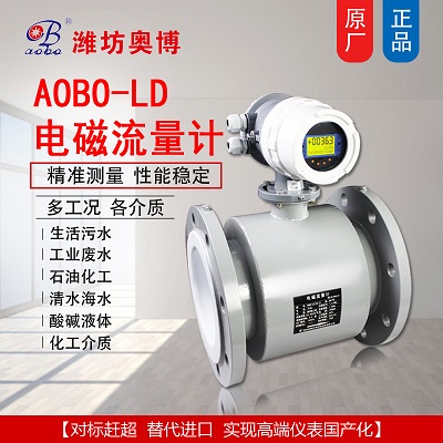 一体分体液体智能电磁流量计:潍坊奥博仪表生产的一款智能型数字显示导电液体流量计,精度高、抗干扰、耐酸碱腐蚀、无压损、直管段要求低,主要应用于自来水、生活用水、海水、酸碱盐溶液、食品液体、医药液体、工业污水处理、生活污水处理等行业。生产厂家供货,无中间环节,品质有保证,提供技术支持与服务,免费选型服务。