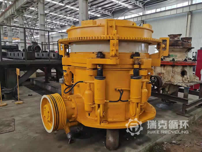 该台HP300多缸圆锥破碎机出厂之后在湖北某地使用,一直从事鹅卵石破碎工作,由于当地环保形式不断严峻,该企业所在地被划为湿地保护区,要求限期搬离,该企业为了降低损失将设备整体打包转让,我公司技术人员到现场检查之后指导拆除将设备运回公司。在我公司车间技术人员将设备整体拆开用仪器检查,然后制定了检修方案,完成检修之后进行试机运行,各项性能均符合要求,已基本销售条件。
