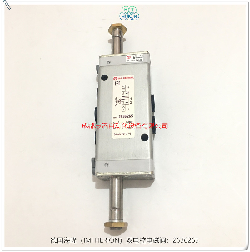 2636265德国海隆(IMI HERION)双电控电磁阀技术参数:接口尺寸G1/4、工作压力1-10bar、流量1200l/min、响应时间30ms、阀体重量0.9kg、手动应急控制按下并锁定、功能2位5通、驱动方式电控/电控、产地德国