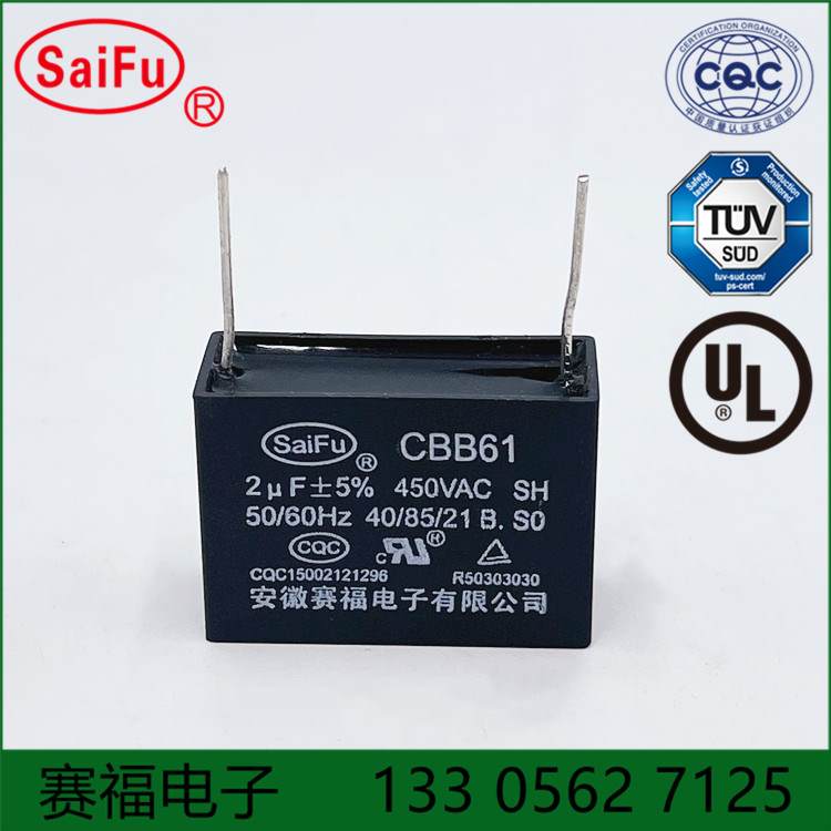 CBB61风扇电容器采用边缘加厚的金属化锌铝膜作为电极和介质。再在ABS或PBT立方体塑料外壳中装入阻燃环氧树脂。本产品拥具有体积小,性能好,产品等级为B级,使用寿命 10000小时。
