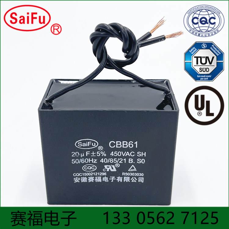CBB61风扇电容器采用边缘加厚的金属化锌铝膜作为电极和介质。再在ABS或PBT立方体塑料外壳中装入阻燃环氧树脂。本产品拥具有体积小,性能好,产品等级为B级,使用寿命 10000小时。