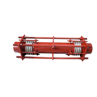 大拉杆横向波纹伸缩节又称横向型波纹膨胀节、横向波纹伸缩节、波纹补偿器。由中间管所连接的两个波纹管及拉杆、端板和球面与锥面垫圈等结构件组成,主要吸收横向位移,也可用于补偿轴向、横向、角向以及由这三种形式合成的任意方向的位移。*使用将fushi拉杆型膨胀节安装在呈90°的Z形管道的中间短管臂内以补偿两端长管线轴向位移。 大拉杆横向型波纹补偿器可以补偿弯曲管段的横向位移和量值不大的角位移,通常不用来补偿角位移。该补偿器由接管、二个波纹管以及大拉杆等零件构成。它能吸收管系任意平面内的横向位移。位移球面螺母绕球面垫圈转动,同时拉杆还具有承受内压推力能力。