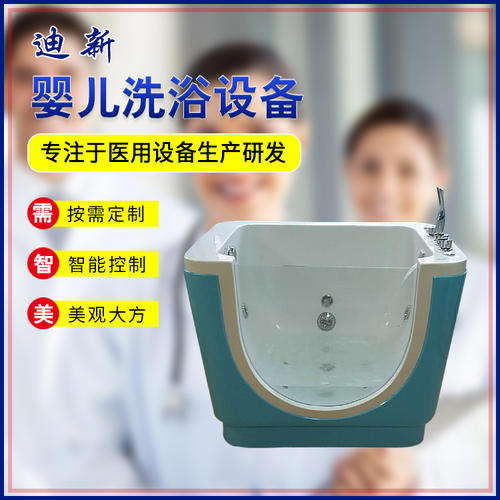 迪新婴儿洗浴中心拥有良好的台面质感,细腻亲切,无冰冷感,全弧形造型设计给婴儿体贴的呵护与关怀,洗礼池和游泳池特有的裙边设计,既方便固定一次性防交叉感染隔膜袋,又防止台面上污水流入池内。游泳池利用有效的水平面积提供更加理想的池内净深度,满足婴幼儿洗浴时的安全高度需要,同时有效保持水温特别设置水位线,防止婴儿游泳时池水外溢。