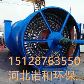机械回转反吹风扁布袋除尘器的工作原理与脉冲除尘器清灰方式不同,含尘气体与切向进入布袋过滤室,大颗粒及凝聚尘粒由于离心力作用下,延筒壁旋落灰斗,小颗粒弥散于过滤室袋间空隙从而被除尘滤袋阻留,净化空气透过滤袋经花板上滤袋导口汇集于清洁室,由通风机吸入而被排放大气中。