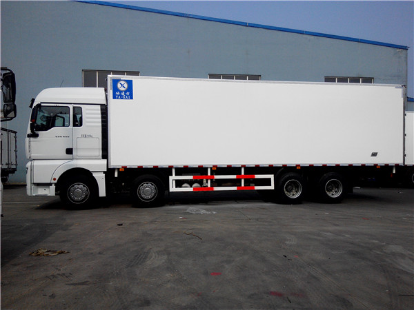 据了解,该款车型采用重汽曼技术MC11系列发动机 ,z大功率400马力,排放满足国四标准。而变速箱而是采用重汽HW21716XSTCL变速器,后桥部分是采用重汽曼技术MCY13Q后桥,速比为3.7,而前桥则是HR 7吨盘式前桥,整车采用前盘后鼓的刹车结构。