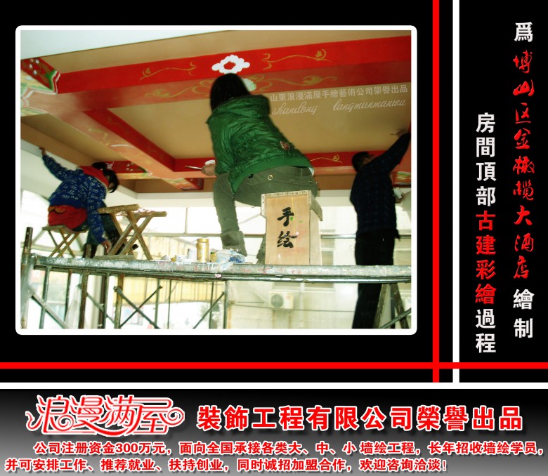 山东浪漫满屋装饰工程有限公司,由悟禅老师于2006年9月15日创立于淄博,后公司总部进驻济南,并在菏泽市、聊城市、潍坊市、淄博市、河北沧州市等多地设立分部,我们由刚开始的浪漫满屋墙绘工作室,后经业务拓展,升级为浪漫满屋手绘工作室,再到后来的浪漫满屋手绘艺术公司。于2015年注册为山东省浪漫满屋装饰工程有限公司,注册资金300万元,是目前国内工商部门正规注册,专注于手绘艺术事业以及墙绘艺术培训的手绘艺术公司。是现行国内正规注册的专业墙绘培训机构,公司培训过的墙绘学员超3000人。15年的品质企业,我们有能力也有实力,完成您的艺术梦想和创业梦想!