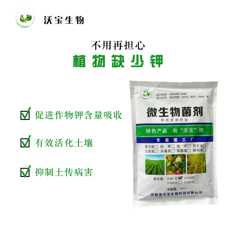 胶质芽孢杆菌又称硅酸盐细菌,具有分解硅酸盐和铝硅酸盐及其他矿石中的含钾矿物,具有溶磷、释钾和固氮功能,同时能在生长繁殖过程中产生有机酸、氨基酸、多糖、激素等有利于植物吸收和利用的物质。菌体灰分中的钾含量在33%以上,菌体内的钾可在菌体死亡后游离出来,可被植物直接吸收利用。