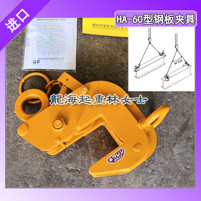 (产品特点)钢板夹具HA-60吊钳设有安全锁扣,操作安全,坚韧耐久,使用寿命长;可采用2只或4只水平起吊钢板,省时省力,确保作业安全;HA-110型钢板夹具装卸夹钳时,可通过拉环打开/关闭杠杆,也可以在夹钳背面提供了一个手柄,以便于操作。