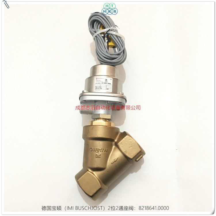 8218641.0000德国宝硕(IMI BUSCHJOST)2位2通座阀技术参数简介:接管口径1.5寸、螺纹种类欧制G直螺纹、通径40毫米、执行机构70毫米、KV值30立方米每小时、打开压力范围0-4.5公斤、工作压力范围3.5-8公斤、阀体重量2.7千克、带2个纤维开关的电气位置指示器、10-30伏,三线,NOC-PNP短路证明、保护类型IP67、LED黄灯、2米电缆、PVC3X0.25QMM、光学位置指示器、流体温度范围负10到180摄氏度、环境温度范围负10到60摄氏度、阀体材料脱锌黄铜(CW617N)、阀座密封材料聚四氟乙烯、内部零件黄铜,不锈钢、地德国