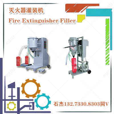 -连接在支撑座-的下方,所述支撑座 -中部设有可供升降气缸-的活塞杆上下移动的升降孔,所述承重板- 连接在升降气缸-的活塞杆的部。通过升降放置台可根据灭火器的规格调整灭火器的高度,使灭火器与固定灌装头相配合,实现灌粉作业。