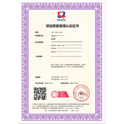 2、申请方的项目质量管理认证已按GB/T 19016-2005标准的要求建立,并实施运行3个月以上。