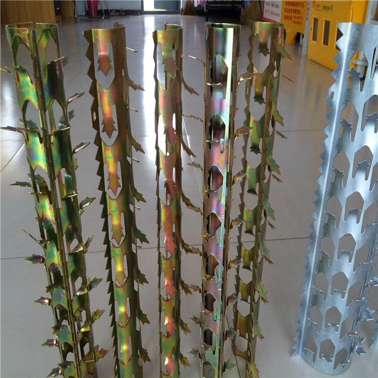 1、以往的防盜刺采用焊接成型工艺,我公司采用冲压成型的新工艺来代替复杂的焊接成型,节约人工成本,价格低于市场焊接产品。