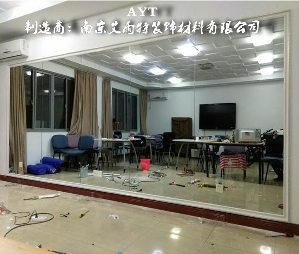 在舞蹈教室里安装镜子应该z可能地让学员看到自己的动作和肢体造型,让老师处在任何一个位置都能看到任何一个学生;镜面景象准确不变形。为了达到这个目的,又要减少费用,建议在安装中参考这样的意见: