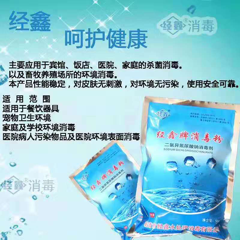 经鑫牌消毒粉是以二氯异氰尿酸钠为主要成分的消毒剂,主要应用于宾馆、饭店、医院、家庭的杀菌消毒。以及畜牧养殖场所的环境消毒。本产品性能稳定,对皮肤无刺激,对环境无污染,使用安全可靠。