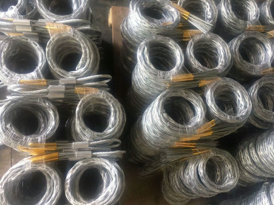 电力拉线网套简称电缆网套,其作用是在电力施工过程中起到链接电缆拖拉电缆的作用,钢丝网套厂家大全 拉线蛇皮套价格齐全,其材质为不锈钢丝加工成型,长度可到2米多以上,特点:由高密度不锈钢丝编织而成,一头为拉环型,在施工的时候另一头链接电缆终端,在施工的时候配合旋转网套连接器,防扭钢丝绳,机动绞磨机,电缆输送机,地缆放线滑车,玻璃钢穿线器等等一系列工具来组合完成对电缆的拖拉牵引作业。