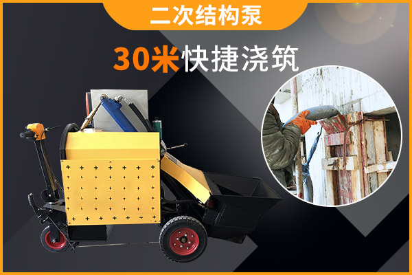 二次构造混凝土专用泵的水平输送距离30米,垂直距离根据使用场所不同,从10-30米都是有的,电机功率从5-11kw,适用于2公分以内的细石子输送。二次构造混凝土专用泵不光可以用于厂房浇圈梁,也可以用于浇构造柱和砂浆输送、斜坡浇筑等等,斜式料斗设计上料更轻松,成功解决了人工上料的难题,油泵专用电机可以确保5万小时正常运行,锂电池充电,地面、楼层轻松移动。