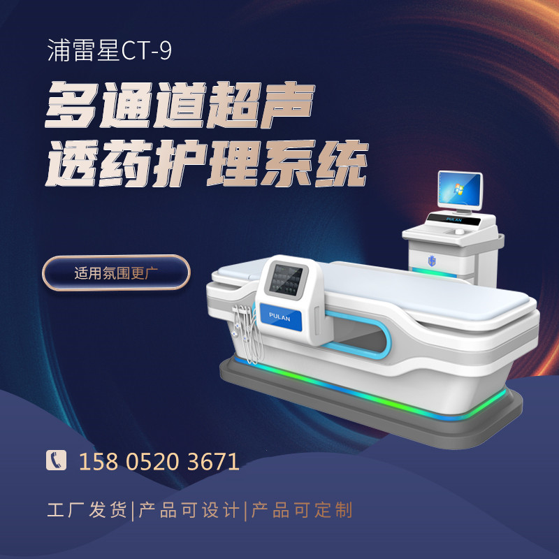 超声透药仪是利用特定频率,特定声强,特定脉冲开关比的超声波伟动力,促使药物透过完整皮肤的一种物理促渗的方法,它可使特定药物分子和离子获得定向运动的功能,沿着声波的传播方向运动,超声作用于人体会产生机械效应,温热效应,空化效应及辐射压力效应来增强皮肤渗透性。特定指标的超声波震动和产生的声压对细胞和组织的细微摩擦,是细胞浆流动,细胞震荡,旋转,摩擦,从而产生细胞按摩的作用,改变细胞膜的通透性,超声在介质中转变成热能,是一种皮肤无感觉的内生热,可增加血液循环,促进药物渗透和吸收,温度改变可以明显影响药物渗透系数,温度升高血液循环加快,从而在不通皮肤层形成药物浓度差,促进药物由浅入深的渗透,温度升高使得脂质通道的流动性提高,脂溶性药物经皮渗透系数提高。