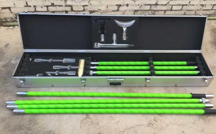 使用传统绝缘操作杆除冰不能得心应手,清除一组瓷瓶上的冰凌需要约15分钟。使用专用除冰组合工具效率大大提高,清理一组柱上开关瓷瓶上的冰凌只需4--5分钟。 专用除冰组合工具由除冰器具及绝缘杆两部分组成,除冰器按照作用设计成不同形状,使用时可以通过敲、铲、钩等方式有效除去瓷瓶、支架、导线及杆塔上的积雪及覆冰。使用时,首先根据需要从套件中选取合适的除冰器具,将其安装到绝缘杆的一端并拧紧后即可使用。绝缘杆分为长、短两种规格,可以根据现场情况进行任意组合,以获取合适的长度来满足不同场合的需求。