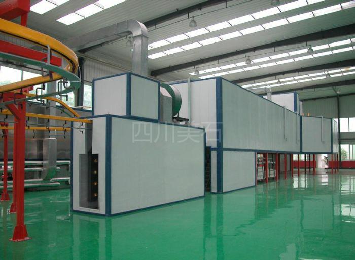 喷塑流水线主要配套设备:悬挂链输送机,不锈钢喷淋清洗剂,脱水炉,喷塑房,自动喷枪,升降机,隔离房,加热炉,固化烘干炉,废气处理设备等。