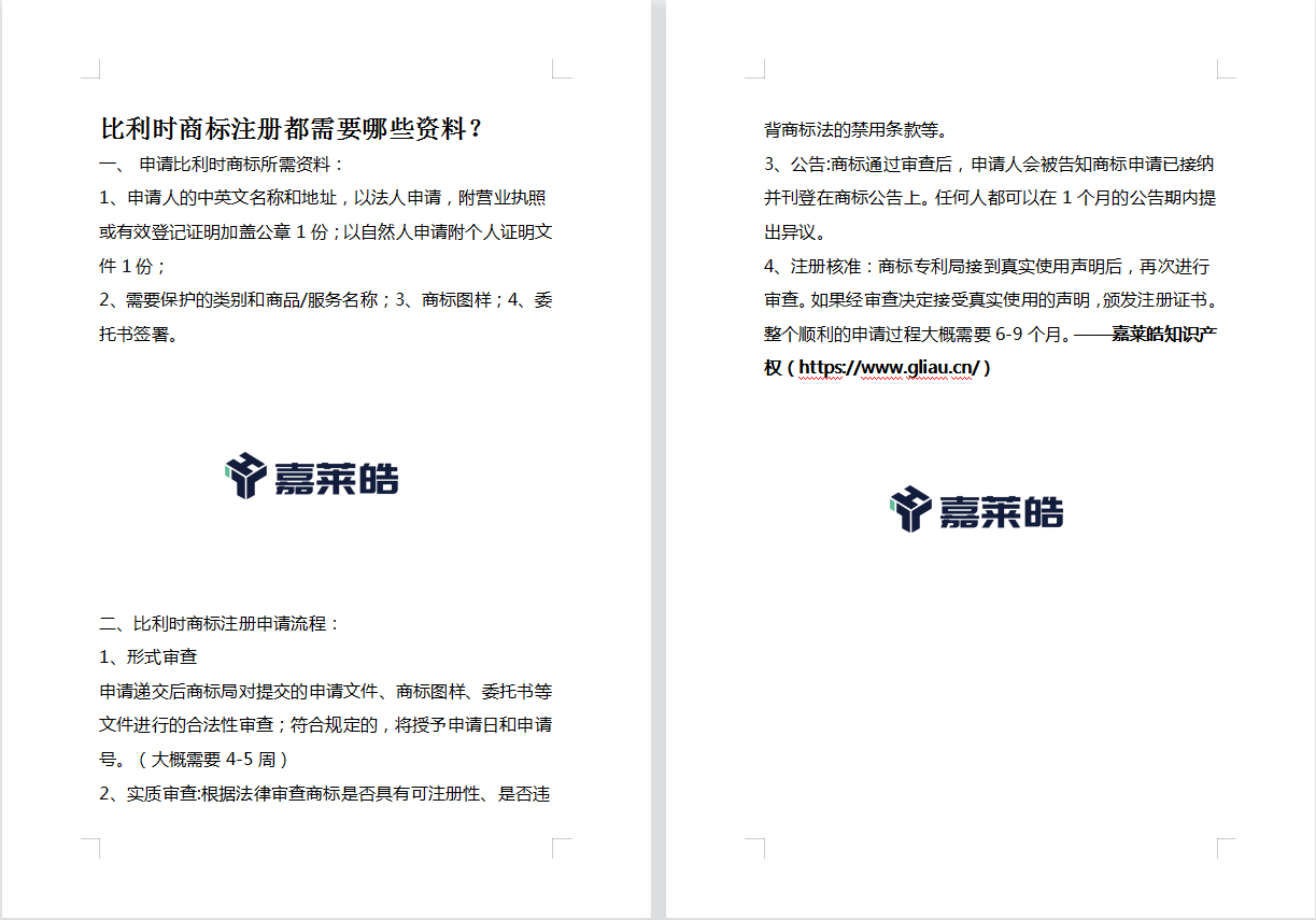 比利时商标注册都需要哪些资料?嘉莱皓知识产权