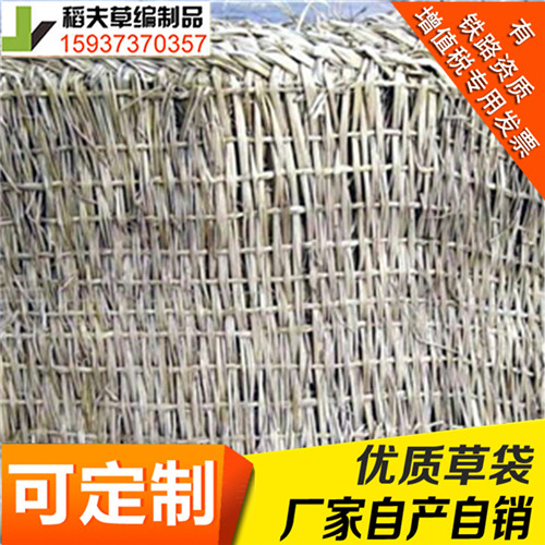 草袋又叫稻草袋是以水稻秸秆为原料用简易草袋机,以5mm草绳为经,水稻秸秆为纬交叉编织拧边而成的草制品。草袋品种分为:小草袋,大草袋,小缝边草袋,大缝边草袋四种类型。草袋的用处很多,通途也很广,草袋可以包装物品也可以当袋子用装物品,主要作为防洪草袋用,用来建设堤坝防洪防汛,也可以用到工厂包装一些铁器产品或机械设备。