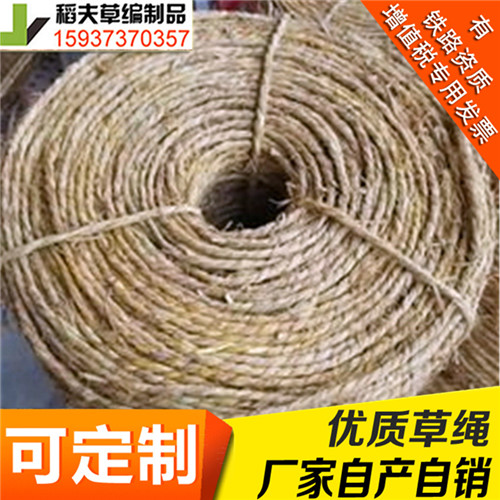 草绳又叫稻草绳是一种以稻草秸秆为原料经过专用的草绳机加工而成的草制品。草绳以廉价及对环境无污染的优势,在市场中一些行业中有着不可代替的地位,其主要应用于园林绿化业中对树木的保护;对管道工程施工时对管道的一些保护及对一些企业产品的外在的保护。因为草绳是以水稻秸秆为原料,水稻秸秆本身就有很好的减震性,所以经过加工后的草绳在缠绕到物品上之后就有更好的保护性。 草绳的制作简单,实用用途广泛,而且在园林绿化中也有着非常重要的作用,是现在园林中z长使用到的保护产品之一。草绳是由稻草加工而成,价格低廉,对环境无污染,是一种属于绿色环保的农业加工产品。草绳的用途很广主要用于:瓷器厂,砖瓦厂,预制件机械厂,园林公司,建筑工地等。由于草绳的用途越来越广,市场中对草绳的需求也不断的扩大,现在已经成了农民一项创收的主要途径。