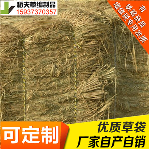 草袋又叫稻草袋是以水稻秸秆为原料用简易草袋机,以5mm草绳为经,水稻秸秆为纬交叉编织拧边而成的草制品。草袋品种分为:小草袋,大草袋,小缝边草袋,大缝边草袋四种类型。草袋的用处很多,通途也很广,草袋可以包装物品也可以当袋子用装物品,主要作为防洪草袋用,用来建设堤坝防洪防汛,也可以用到工厂包装一些铁器产品或机械设备。