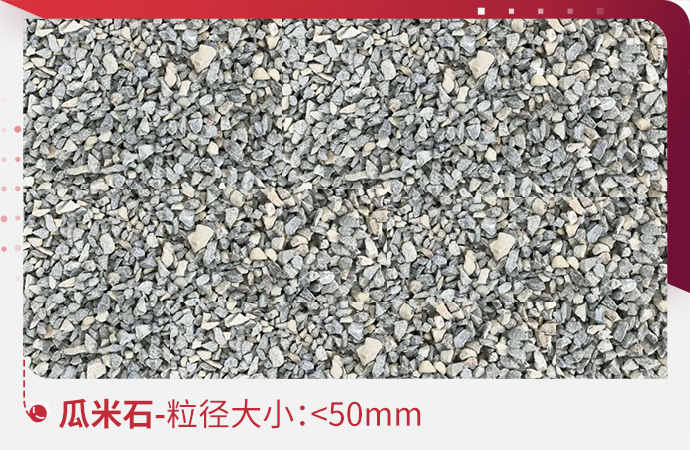 瓜米石就是大家常说的石末,粒度跟绿豆大小差不多,小于50mm,粒型带有棱角,经专业制砂设备加工处理后,常用于屋面、地面、水泥等领域,是不错的建筑材料。
