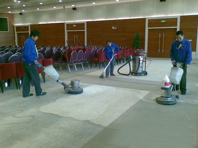 2、清洗:用擦地机进行正确的擦洗,擦洗前加入适量的地毯清洁剂、除油剂、除胶剂和消毒剂。