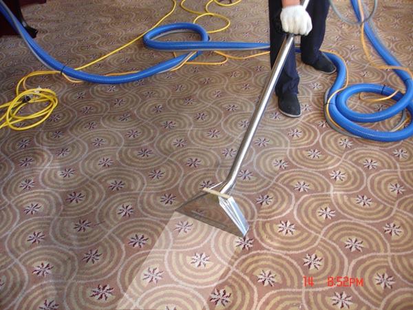 4:在清洗地毯的同时,用吸水机吸净已洗完的地毯。