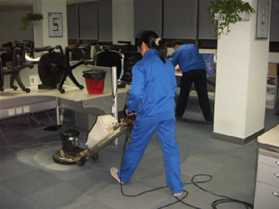 4:在清洗地毯的同时,用吸水机吸净已洗完的地毯。