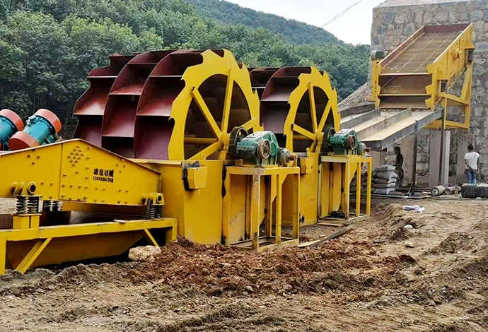 第三步为制砂、洗砂环节,主要用到的设备为制砂机和洗砂机。中碎后的石英石变成了不到5cm的小石头,再经过制砂机进行细碎制砂处理,制砂后变成了不同规格的石英砂;石英砂经过筛分后,送入洗砂机清理掉石英砂表面包裹的泥土、石粉等杂质,从而完成石英石的制砂作业。