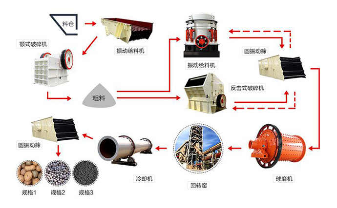 开采后的陶粒砂原料,块度一般在300-500毫米左右,一般先采用颚式破碎机对其进行粗碎处理,再由圆锥破碎机对其进行二次破碎加工,将粒度控制在8毫米范围内(破碎粒度越小,之后磨粉作业就越轻松)。kjzj.com