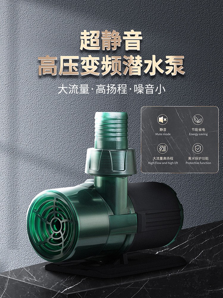 超静音高压变频水泵 鱼缸潜水泵鱼池小型底吸水泵水陆两用循环泵