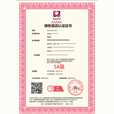 以环境友好为理念,将环境友好行为、环境管理融入饭店经营管理中,贯彻环保、节约、健康和安全的宗旨,坚持绿色管理和节约资源,建设绿色消费,保护生态环境和合理使用资源的饭店。