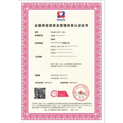 广汇联合办理全国ISO27017云服务信息安全管理 国家认可