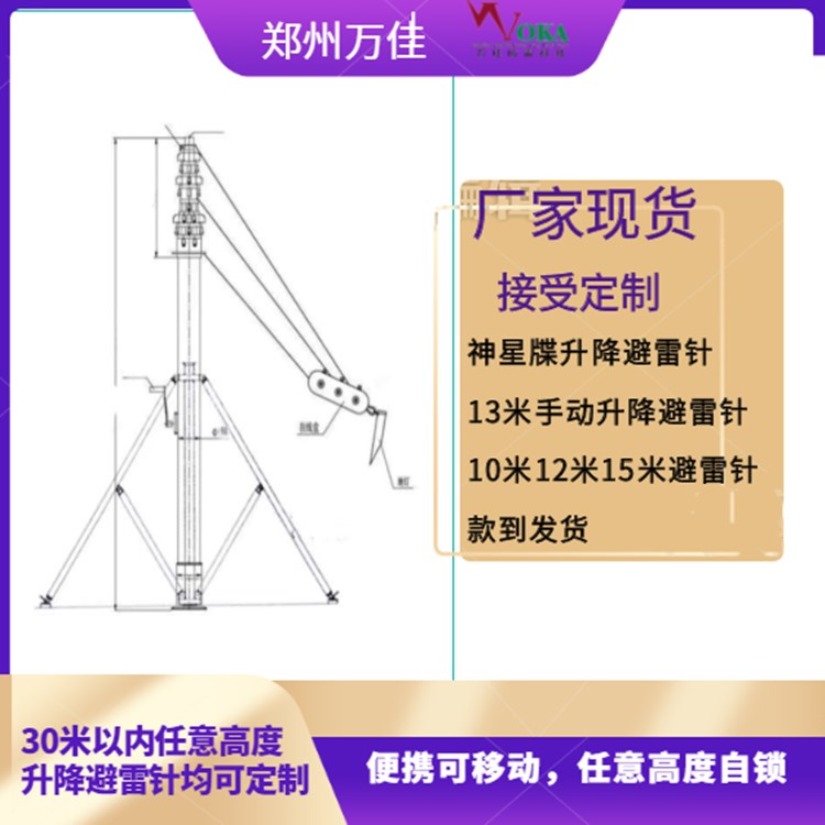 万佳15米手动升降避雷针 技术参数: