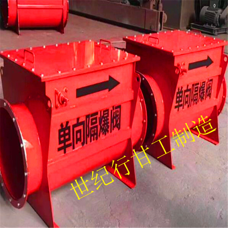 单向隔爆阀正常用于除尘器或旋风分离的入口管道上,是一种简单、经济可-靠的的隔爆产品,主要用来隔断设-备内部暴炸后产生的火焰和冲击波传到上游的管道和设备。在操作过程中,单向隔爆阀的阀瓣由管道内正常工作的气流打开或者处于常开状态。在被受保护的设备内部发生暴炸的情况下,隔爆阀的阀瓣受冲击波的冲击而关闭。