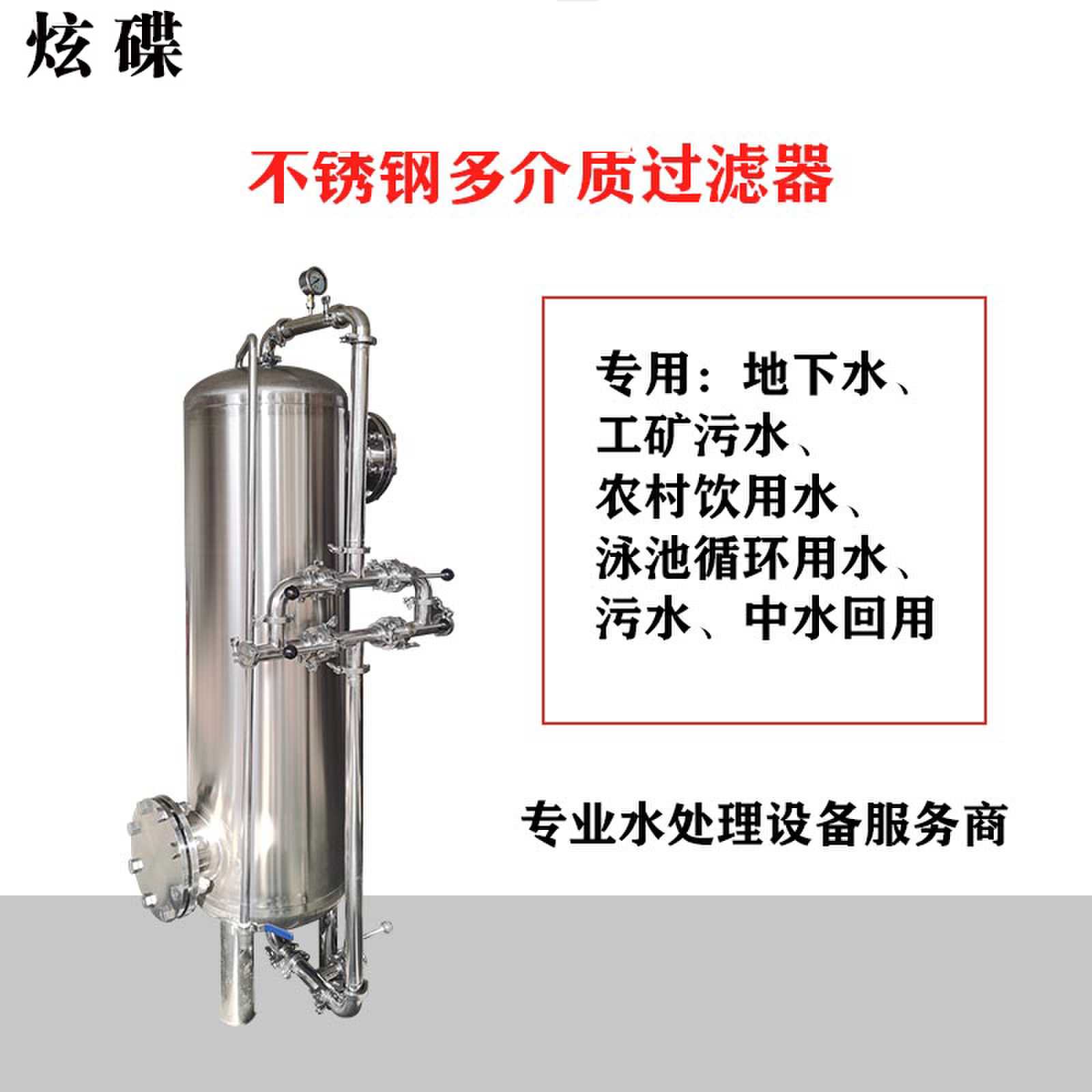 机械过滤器也称压力过滤器是纯水制备的前期预处理,水净化系统的重要组成部分,其材质有钢衬胶或不绣钢制成,因滤器填充介质不同,用途与作用各有区别。一般有石英砂过滤器、活性炭过滤器、锰砂过滤器。根据实际情况可单独使用也可联合使用。