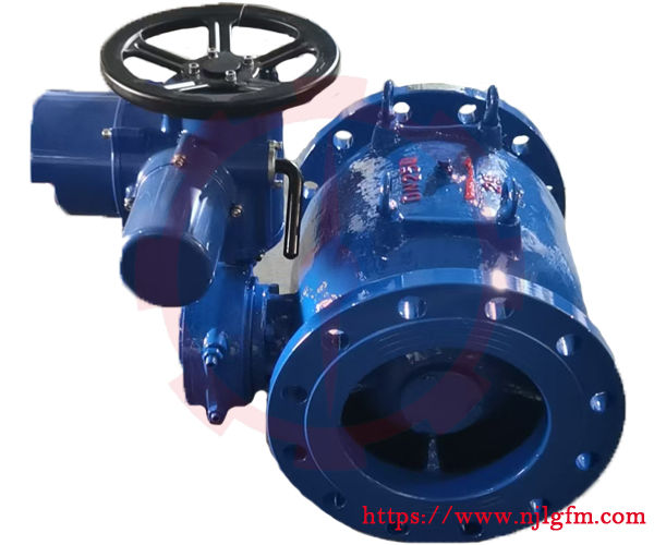 为了使所有喷出的水柱能集中相互冲击,必须使各点压力或速度水头保持在每一喷孔前达到一 致。在直流型电动调流阀中,是利用阀体外壳和内导流筒形成一个圆环形通道,使介质在阀腔内作流 线型运动,以保持各点压力一致。