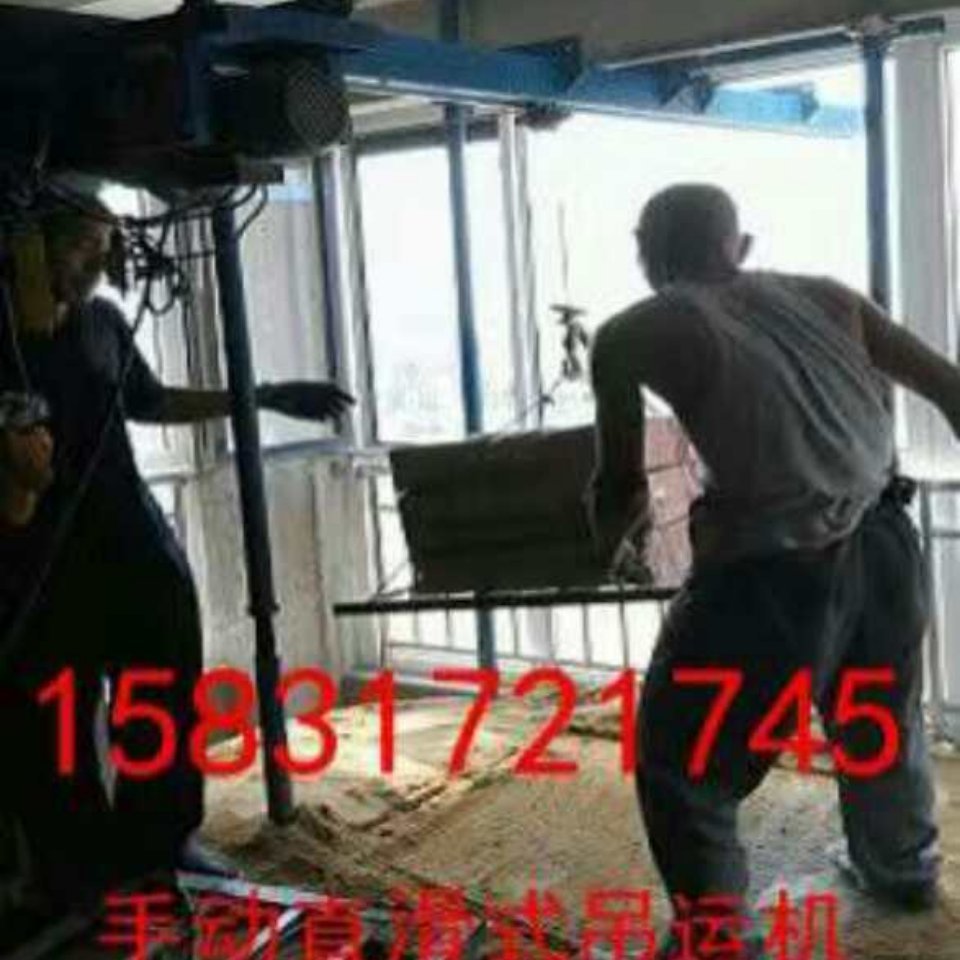 批发直滑小型吊机特点及安装1、吊运机的主要特点:体积小、重量轻、小巧玲珑、结构紧凑、携带方便。安装简便,将动力装置安放在靠近窗户(或阳台)处,组装支架部分,并将其插入动力装置的底座孔中,5分钟就可安装好。吊运速度快,4秒提升1米,10层楼3分钟就可打来回,配用"专用工具"吊运速度惊人,并且楼层越高优势越大4、适用范围广采用220伏单相电源,用于装璜公司、吊运公司、安装公司、搬家公司、工厂车间、修理部门、仓储库房等多种行业及居民家庭。同时还有广泛的使用场所,除可装于户内,还可安装于房顶,可利用角手架安装于大型工程工地,也可代替龙门吊运于小型建筑工程。能安装防护网、广告牌,也能做楼顶防水现浇工程;能修井修泵还能存放水果、晒粮 ……容易操作、安全可靠。一个小时就可以学会操作机器,按本说明书操作出现以外时,起吊物件可碰到限位器并拨动行程开关,即刻切断电源,可确保操作安全500公斤室外四柱吊轨吊运机