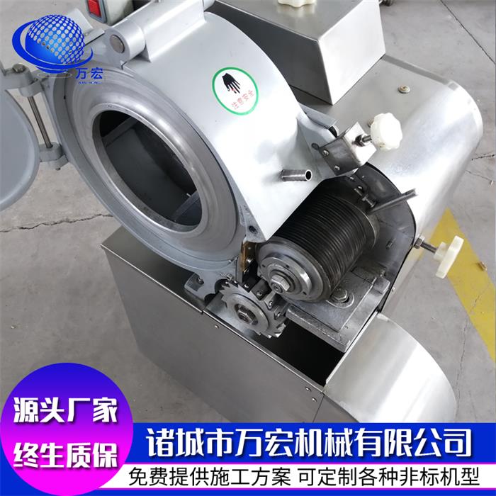 切丁机材料选用必须符合食品卫生要求,机架、壳体、拨盘、料斗及与食品接触的部件均由不锈钢制作。