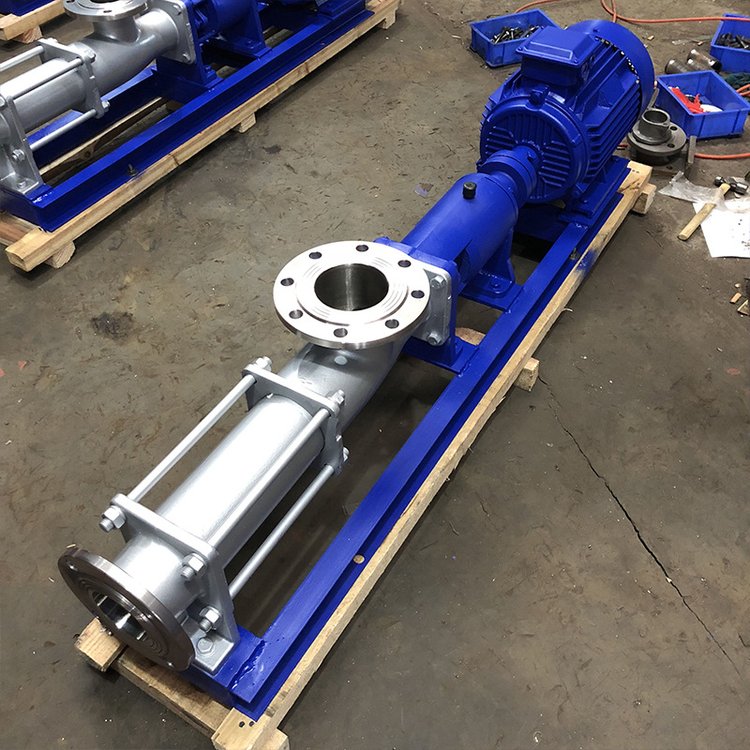 G型单螺杆泵是按迥转啮合容积式原理工作的新型泵种,主要工作部件是偏心螺杆(转子)和固定的衬套(定子)。由于该二部件的几何形状,分别形成单独的密封容腔,介质由轴向均匀推行流动,内部流速低,容积保持不变,压力稳定,因而不会产生涡流和搅动。每级泵的输出压力为0.6Mpa,扬程60m(清水),自吸高度一般在6m,适用于输送介质温度80℃以下(要求可达150℃)。因定子选用多种弹性材料制成,所以这种泵对高粘度流体的输送和含有硬质悬浮颗粒介质或含有纤维介质的输送,有一般泵种所不能胜任的特点。其流量与转速成正比。传动可采用联轴器直接传动,或采用调速电机,三角带,变速箱等装置变速。