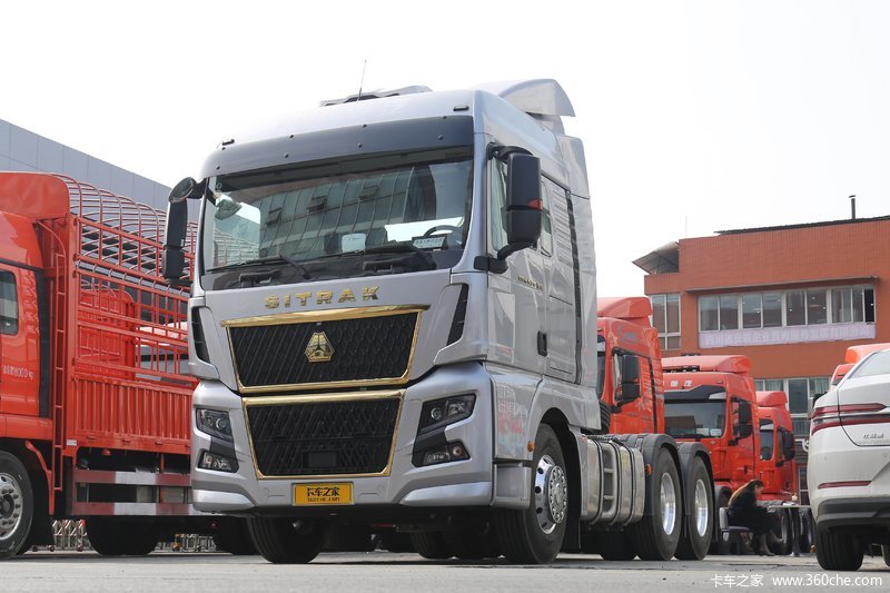 汕德卡 G;基础款;牵引车;危化品运输;G7-G驾驶室 经典版;导流罩和侧导风板;MC11.46-61发动机;HW25716XSTCL变速箱;VPD71DS前轴(盘);MCY11BES双后桥(盘);速比3.7;TGA技术车架-B版;前少后空气悬架(2/-/-);博世方向机;公路版进气系统;限速79km/h;前置排气系统;EBS+ESC;中位保险杠(非金属);前铝合金车轮(国产)+后轻量化车轮;12R22.5;50#JOST鞍座;分体式挡泥板;400L油箱;终端排放监控装置;转向轮爆胎应急装置;选装胎压监测系统