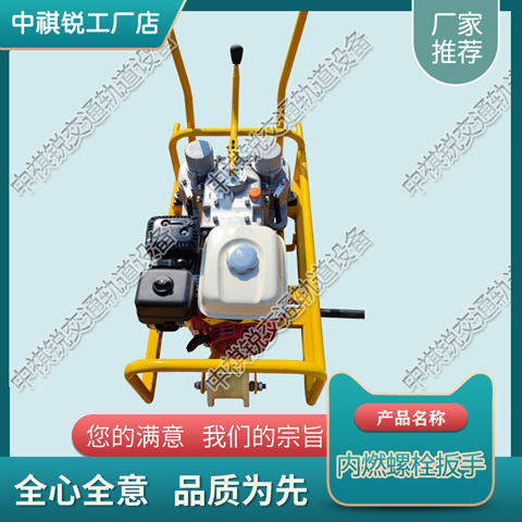 4. 将换向手柄由空档放置于你所需要的档位(正转或反转)抬起操作手把,将套筒套在轨枕螺母上,旋转离合器手柄,拉动离合器使之结合,套筒开始工作,当轨枕螺母松开或锁紧按需要的技术要求时,松开离合器手柄,离合器自动复位(即脱离状态),套筒停止工作,这就完成一条轨枕螺栓的松开或锁紧的全过程。