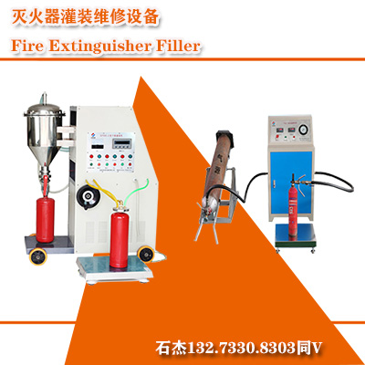 工作原理:本装置主要用于对多种灭火器进行充填工作,工作时,将充装计量抽屉抽出,并通过旋拧拉出固定座将其固定,安装固定支架,并通过固定插销座及固定支架固定灭火器,将相应的子接头安装于填充管出口端,之后再装于灭火器上,通过控制器启动相应的填充组件,直至充装电子秤达到示数,即完成灭火器充填过程。