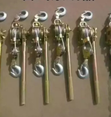 4.非常后把钢丝绳或镀锌铁线绕在棘轮的滚筒上。