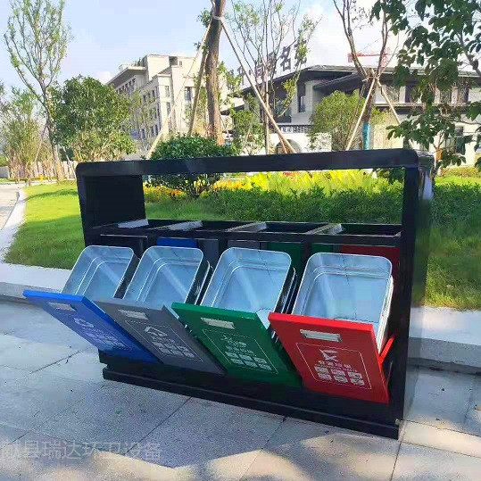 a设垃圾分类收集其他垃圾和可回收物和易腐垃圾和有害垃圾内胆箱各一只,采用镀锌板材质,具有防腐、阻燃的特点,光滑表面易于倾倒垃圾,外侧四面自带拉手。